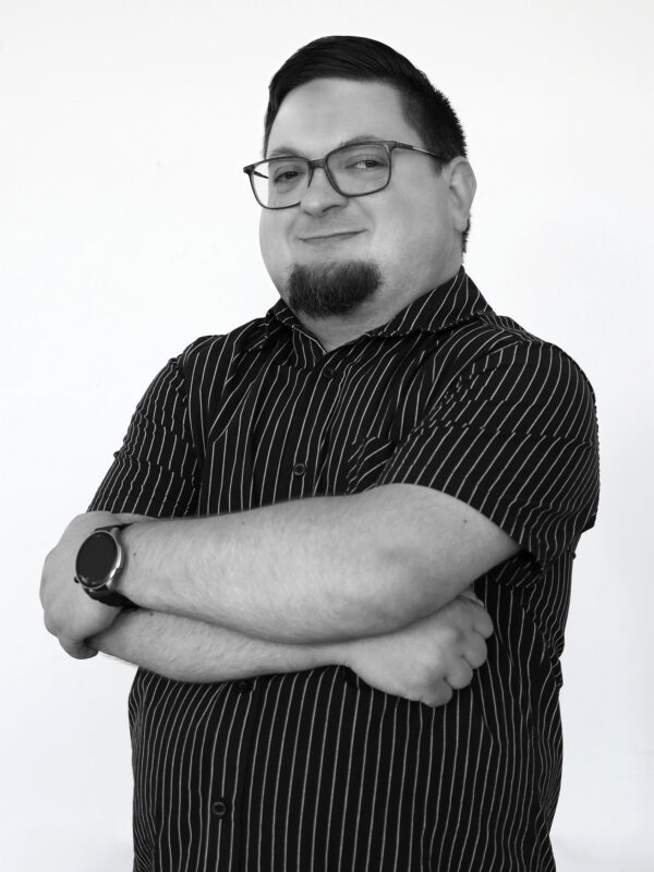 Filolog angielski z dużym doświadczeniem w wykrywaniu prania brudnych pieniędzy. Twardo stojący na ziemi fantasta, fanatyk twórczości Pratchetta i wielki fan literatury w ogóle, a fantastycznej w szczególe. Pasjonat tłumaczeń dla Straży Granicznej i szukania powiązań pomiędzy tekstami. Wiele lat pracował w korporacji, więc wie, co to czelendżowanie dedlajnu na ASAPie i docenia absurdy życia codziennego. Zaczął pisać kilka książek – jak je kiedyś skończy, utonie w honorariach, ale na razie skupia się na zaszczepianiu swoim młodym Padawanom miłości do języka angielskiego – a w szczególności do przełamywania niechęci do mówienia.